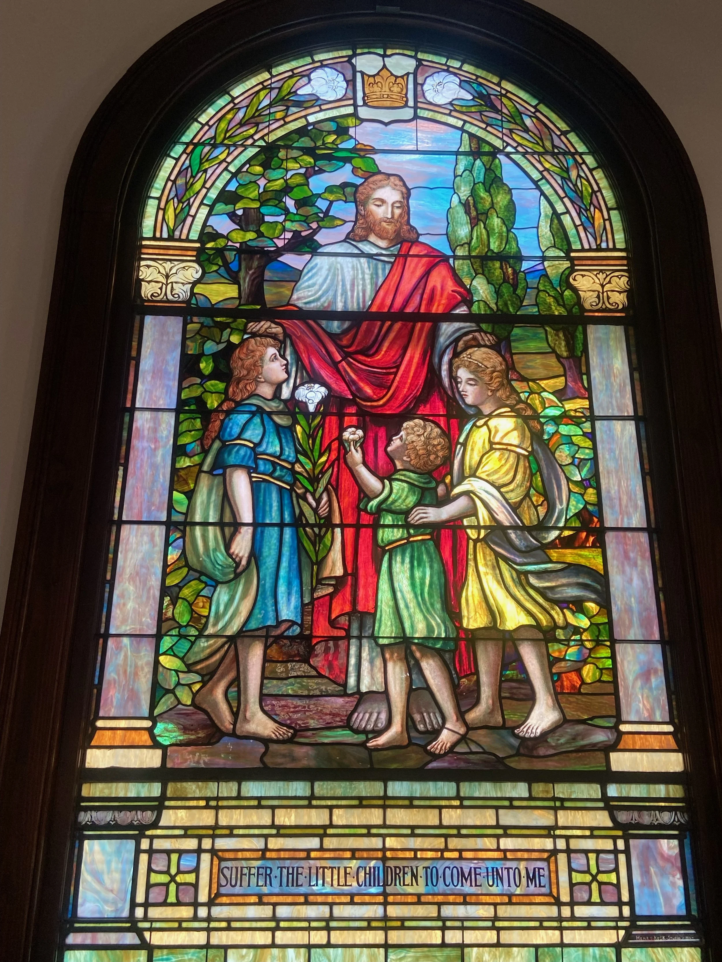 The present church building was dedicated in 1916. News stories recount 200 people crammed into the new building while many more gathered outside. In the 1960s, the youngest Weller daughter, Cora, gave the Weller structure and its land to the church. Shortly afterward, this building was razed to make room for a large parking lot.